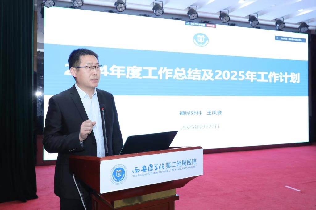 时光荏苒,岁月如梭,转眼间我们已踏入充满机遇与挑战的2025年。2024年全院齐心协力,在医疗服务、学科发展、科研创新等方面稳步前进。为了在2025年的新征程上更好地服务患者、推动医院高质量发展,我院于2月20日在学术报告厅成功召开2024年度临床医技科室工作总结会。院长赵海康,纪委书记张蔚,副院长苏玉强、兀威、葛鹏及院长助理路小军等院领导出席会议,总结过去一年的工作成果,共话新一年的发展蓝图。会议由副院长苏玉强主持。