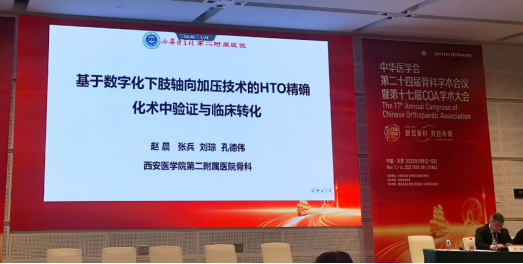 创新与转化会场:赵晨作《基于数字化下肢轴向加压技术的胫骨高位截骨术精准化术中验证体系构建与临床转化》论文发言