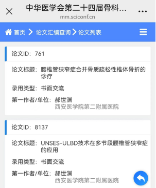 脊柱外科团队在郝世渊主任的带领下积极投稿7篇全部入选,其中2篇论文发言,2篇书面交流,3篇电子壁报。先后在胸腰椎退变会场、骨质疏松会场作《AUSS-TLIF与UBE-TLIF的应用体会对比》《特立帕肽在骨质疏松患者椎间融合术中的应用》的学术报告,获得国内外参会专家的广泛关注,提高了我院脊柱外科的学术影响力。