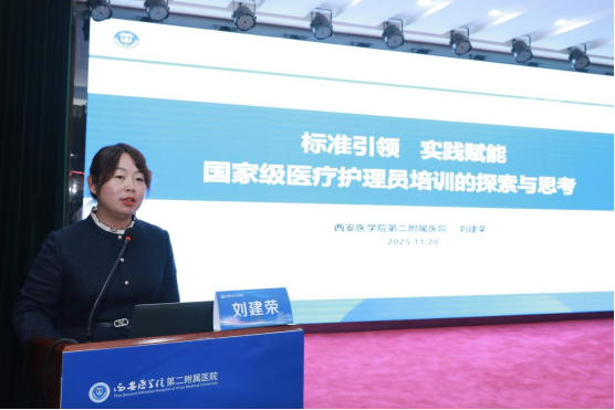 学术交流环节作为 “学术金秋 ” 活动的核心内容,邀请到国家及省市知名专家带来前沿分享。西安市中心医院张巧玲以《医疗护理员培训现状与管理》为题,剖析了当前医疗护理员队伍建设的痛点与优化路径;浙江金华市中心医院俞剑昀围绕《心肺运动康复的医工交叉思考》,展示了医学与工程技术融合在康复护理中的创新应用;西安交通大学电气学院李江涛结合实践,分享《康养结合中老年认知筛查评估的思考与实践》,为老年护理服务升级提供新思路;唐都医院王磊介绍《3D 打印可降解胸壁植入物的研发与临床应用》,展现了科研成果转化为临床护理工具的突破;西安联创生物医药孵化器有限公司宋欣媛解读《科研成果转化》,为护理科研落地提供实操指导;西安医学院第二附属医院刘建荣则以《国家级护理员培训策略》收尾,为护理人才标准化培养指明方向。专家们的分享覆盖护理管理、技术创新、人才培育等多个维度,既有理论高度,又有实践深度。
