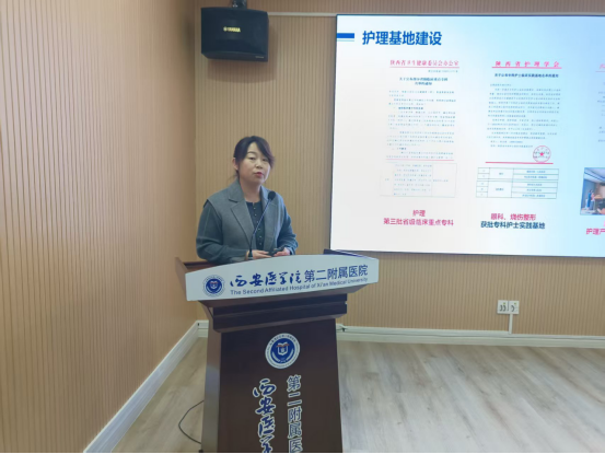 为深入推进校院合作,提升临床护理人才培养质量,2025年12月5日上午,我院迎来汉中职业技术学院一行4人,开展2025-2026学年临床护理实习检查交流活动。会议由护理部部长、护理教研室主任刘建荣主持。汉中职业技术学院党委委员、总会计师尚丽华、护理学院副院长马春丽、护理学院口腔护理专业负责人余颖、护理学院综合办教学秘书齐柯雯、我院护理部教学培训督导赵赞利、外科片区总护士长、医学影像科护士长李小强、特殊片区总护士长、消毒供应科护士长王岳娜及科室护士长、带教组长、学生参加。