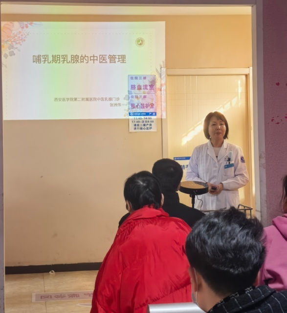 课堂上,张医生从乳腺健康基础知识、中医诊断方法、中医调理方法以及预防与日常护理四个方面,系统阐述了孕期及产后乳房的科学护理、常见异常问题的诊治与预防知识。内容贴近实际、深入浅出,帮助孕产妇及家属加深了对哺乳期乳腺健康的理解,解答了许多孕妈妈的困惑与疑问。