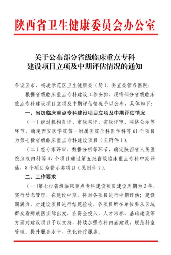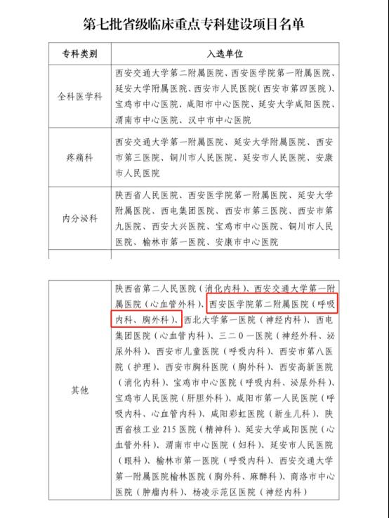 近日,陕西省卫生健康委员会正式公布第七批省级临床重点专科建设项目名单。我院呼吸与危重症医学科、胸外科凭借深厚的学科积淀、强劲的技术实力与优质的医疗服务,经过机构自评、省级评审、网络公示等多轮严格遴选,成功获批。这一喜讯不仅是对两个科室多年来深耕细作、精益求精的高度肯定,更是西安医学院第二附属医院在学科建设道路上稳步前行、再创佳绩的有力见证。