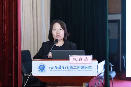 随后,灞桥区卫生健康局医政科科长秦蓉发表讲话。她首先对区护理质控中心成立以来取得的工作成效表示肯定,她强调,中心有效搭建了优质护理管理平台,为区域护理服务整体提升奠定了坚实基础。同时希望质控中心持续发挥平台枢纽作用,推动资源下沉与学术指导,积极分享先进经验,促进护理质量同质化管理,并号召全区护理工作者凝心聚力,推动灞桥区护理质控工作再上新台阶,为卫生健康事业高质量发展贡献力量。