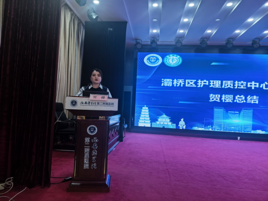 会议最后,灞桥区护理质控中心副组长贺樱作总结讲话。她充分肯定了本次会议的成效,表示本次会议既是一次思想的统一,更是一次行动的集结。她强调,全区护理管理者要以此次会议为契机,进一步深化护理敏感指标应用,不断学习先进经验,加强培训与交流,筑牢安全防线,推进全区护理质量持续改进。