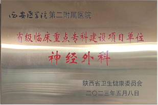 神经外科技术创新成果丰硕,完成多项西北及陕西省首例高难度手术,成功开展西北首例国产可充电脑深部电刺激系统植入、西北五省首例智能可感知脑起搏器治疗帕金森病,独立完成科室首例颈动脉内膜剥脱术、陕西省首例“改良Foerster-Dandy”手术治疗痉挛性斜颈等。科室连续多年开展院内新技术新业务,以技术突破守护患者生命健康。