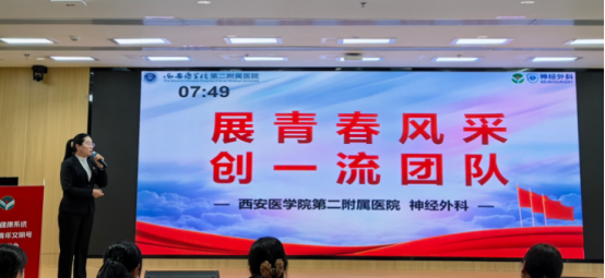 近日,陕西省卫生健康系统第22届全国青年文明号竞标答辩评审会暨创建工作培训班在西安交通大学第一附属医院陆港院区举行。我院神经外科作为我院省级“青年文明号”代表团队,在答辩环节中全面展示了近年来神经外科在党建引领、技术创新、人才培养、优质服务和社会责任等方面的工作成效,获得了评审专家的积极关注。