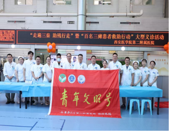 神经外科积极践行医者担当,将奉献精神融入实际行动。疫情期间,青年医护冲锋在前,筑牢院内防线的同时,远征支援上海、宝鸡、榆林等地,用逆行诠释奉献精神;定期组织优秀青年医护下沉基层,通过技术带教、手术示范、教学查房等形式帮扶基层医院提升神经疾病诊疗能力;连续举办多期“三瘫”义诊,远赴青海为脑瘫患儿开展公益诊疗与随访,以专业与爱心回馈社会,展现新时代青年医务工作者的责任与担当。