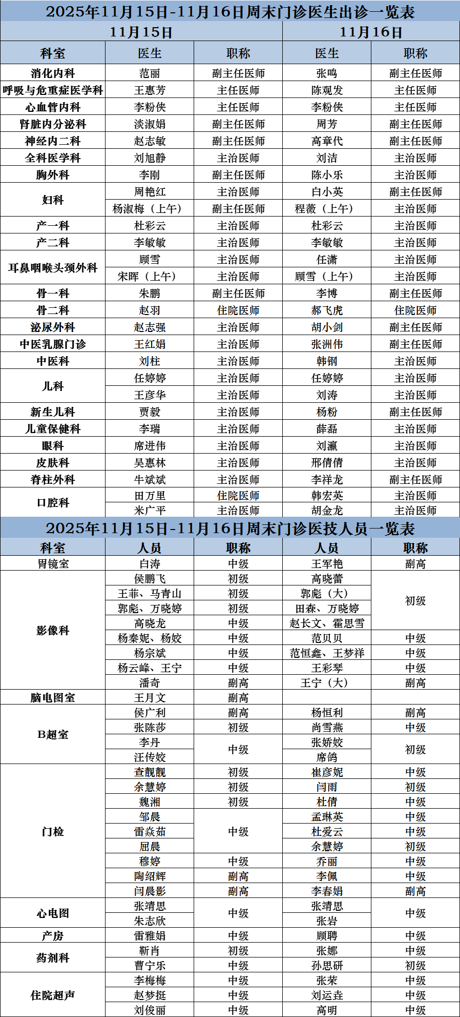 周末门诊丨 西安医学院第二附属医院11月15日-11月16日周末门诊出诊安排