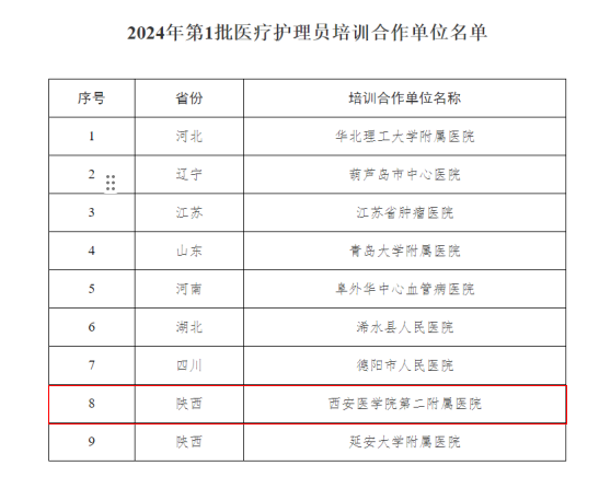 为贯彻落实《“健康中国2030”规划纲要》《关于加强医疗护理员培训和规范管理工作的通知》(国卫医发〔2019〕49 号)《医疗护理员国家职业标准》(2024年版)《陕西省医疗机构免陪照护服务规范》(陕卫医质控便函〔2025〕232号)要求,加强医疗护理员人才队伍建设,规范医疗护理员的从业行为,不断优化医疗服务,提升患者体验,满足社会的健康照护需求,2024年9月24日我院正式获批成为国家卫生健康委人才交流服务中心合作单位。现将我院2026年第一批医疗护理员培训招生相关事宜通知如下: