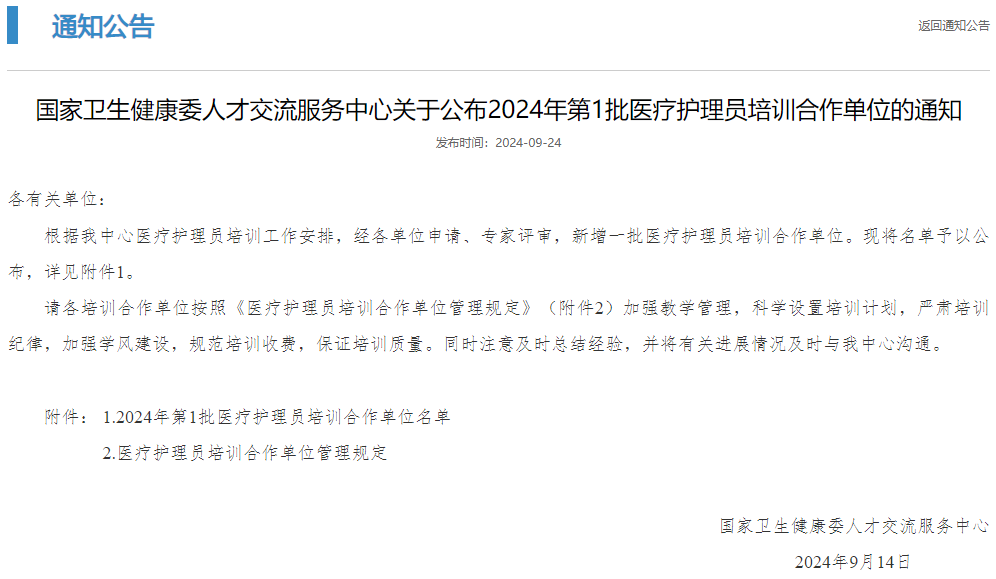 获批国家卫生健康委人才交流服务中心第1批医疗护理员培训合作单位
