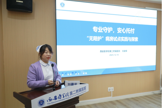 为优化医疗服务流程,提升患者体验,减轻患者家属住院陪护负担,更好满足患者全面、全程、优质的护理服务需求。12月10日,陕西省护理管理专业医疗质量控制中心主任辛霞及秘书代雯晴,空军军医大学第二附属医院护理处处长蒋玮一行三人莅临我院,就“无陪护”病房试点工作开展专题调研。作为全省首批试点单位,我院高度重视此次调研,副院长葛鹏及相关职能部门负责人、试点病区护士长、护理部工作人员参与了此次调研工作。