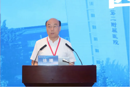 在开幕式上,徐曦书记以热情洋溢的开场白欢迎各位领导、专家的到来。他指出,在中国医师节设立八周年之际举办此次盛会意义非凡,既是对医者精神的礼赞,也是推动学术交流的重要平台。徐书记特别强调,西安医学院第二附属医院作为区域医疗中坚力量,始终坚持"医教研协同发展"理念,与兄弟医院共同推动区域医疗卫生事业发展。他介绍到,本届年会汇聚了来自清华大学、中山大学、四川大学、西安交通大学、空军军医大学、延边大学等医学院校的多名专家、教授进行专题授课,与会同仁充分沟通交流,为提升区域医疗服务水平注入新动能。会议先后邀请西安医学院副校长苏兴利、灞桥区卫生健康局局长白莉、西安医学院医院发展管理处处长王胜昱、西安医学院第二附属医院院长赵海康等领导发表致辞,为大会拉开精彩序幕。