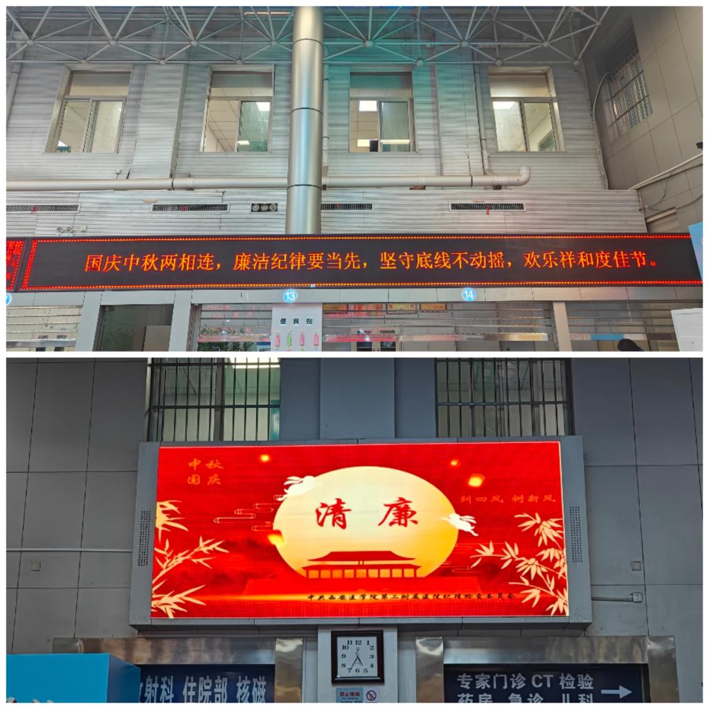 医院纪委制作廉洁标语在院区电子屏循环播放,希望全体干部职工严守纪律规矩,共同营造廉洁文明、风清气正的节日氛围。