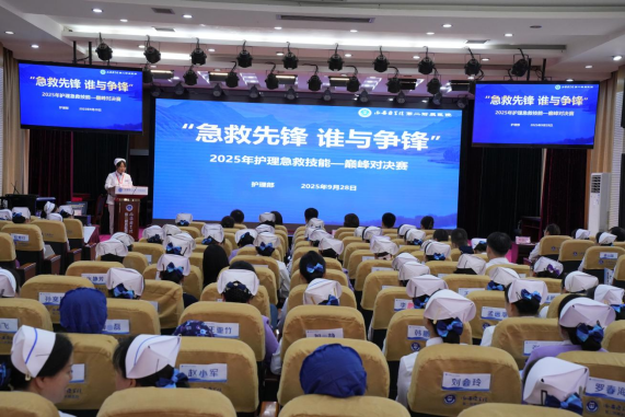 为深入贯彻落实国家关于提升医疗服务质量与安全、 加强卫生人才队伍建设的方针政策,紧密围绕三级医院评审 中“持续改进医疗质量,保障患者安全 ”的核心要求,我院于9月28日下午成功举办“ 急救先锋谁与争锋 ”护理急救 技能大赛,全院共39个队伍参赛。此次活动以“ 以赛促学、 以赛促练 ”为核心路径, 旨在全面夯实队伍应急救治能力,为患者安全筑牢坚实屏障。