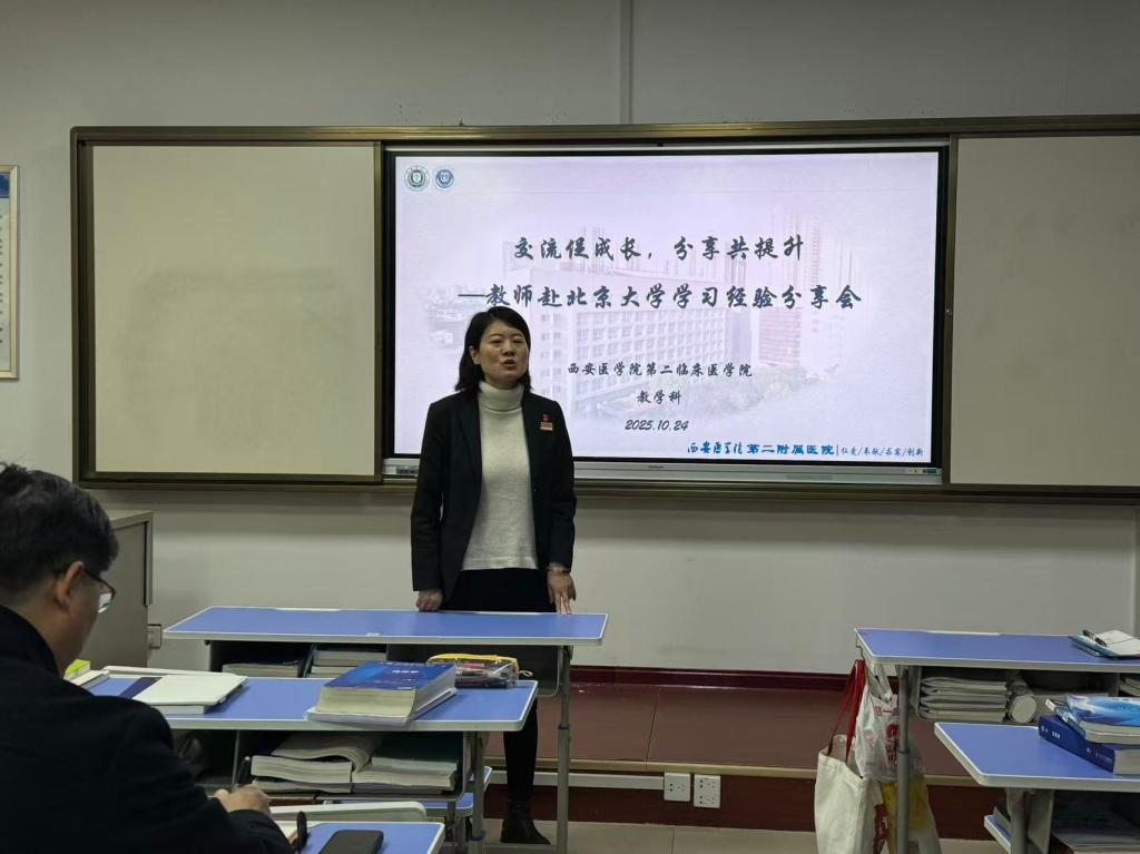 为充分发挥外出培训学习的辐射效应,将前沿教育理念与先进教学方法转化为全院教师共同的财富,进而全面提升全体教师的教学素养与育人能力,第二临床医学院于10月24日下午在学院202教室组织召开了一场内容翔实,双轮驱动的专题培训及座谈会议。会议紧密围绕“学习成果分享”与“执业医师通过率提升”两大主题,分为上下两个阶段进行。麻醉学科带头人、专业负责人、各教研室主任、教学职能部门主任及骨干教师参会,共话教学改革,共商育人大计,会议由教学科主任高燕主持。
