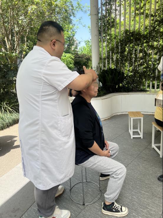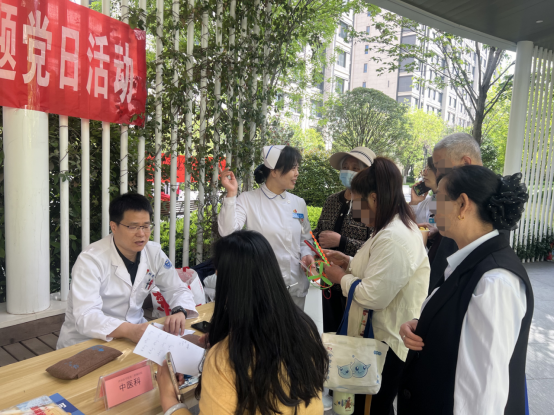 义诊现场,来自中医科、眼科、皮肤科的党员医护人员热情细致、耐心认真地解答居民的健康疑问和疾病预防知识,针对老年人常见的慢性病、多发病开展健康科普。中医技师现场为居民进行颈椎病推拿,效果立竿见影,获得一致好评。活动中,党员医护人员还向居民发放了中医草药香包和健康知识手册,传递健康生活理念。