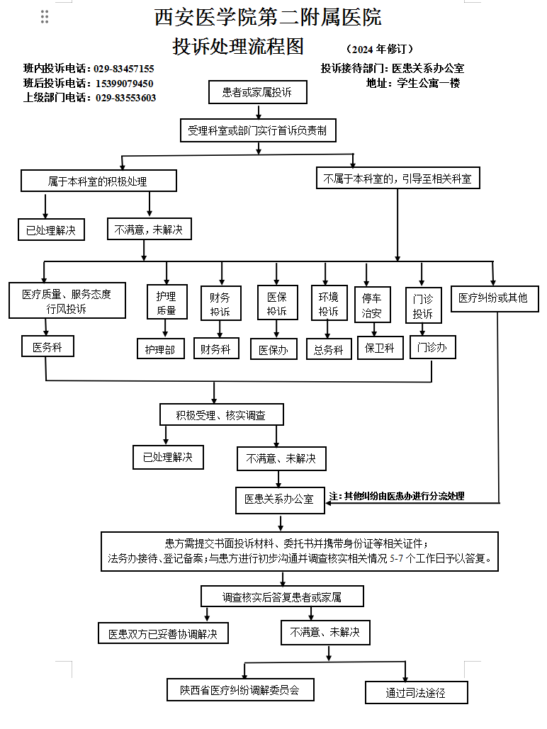 西安医学院第二附属医院投诉处理流程图